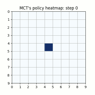 以上で、モンテカルロ木探索を行うための知識は一通り説明しました。深層学習を組み合わせなくとも、Rolloutの際の方策が一様ランダムであろうとも、簡単な問題であればそこそこ良い手を着手できます。