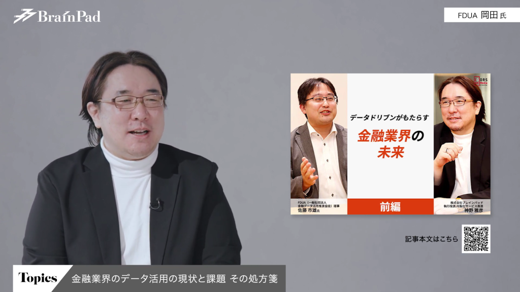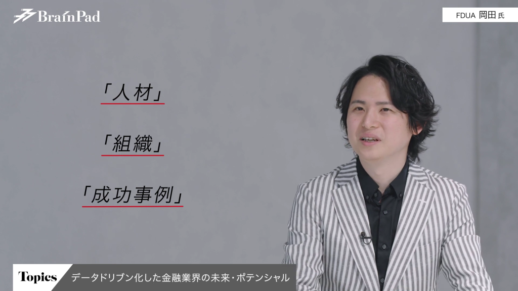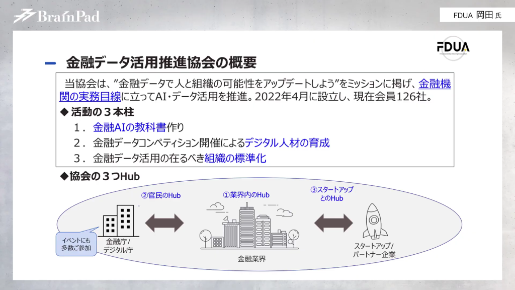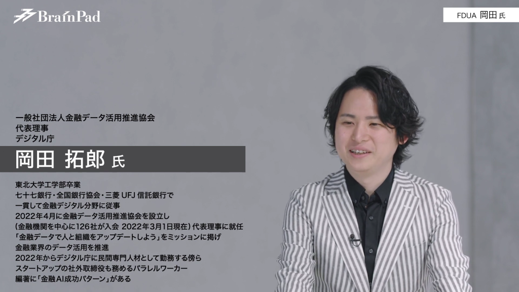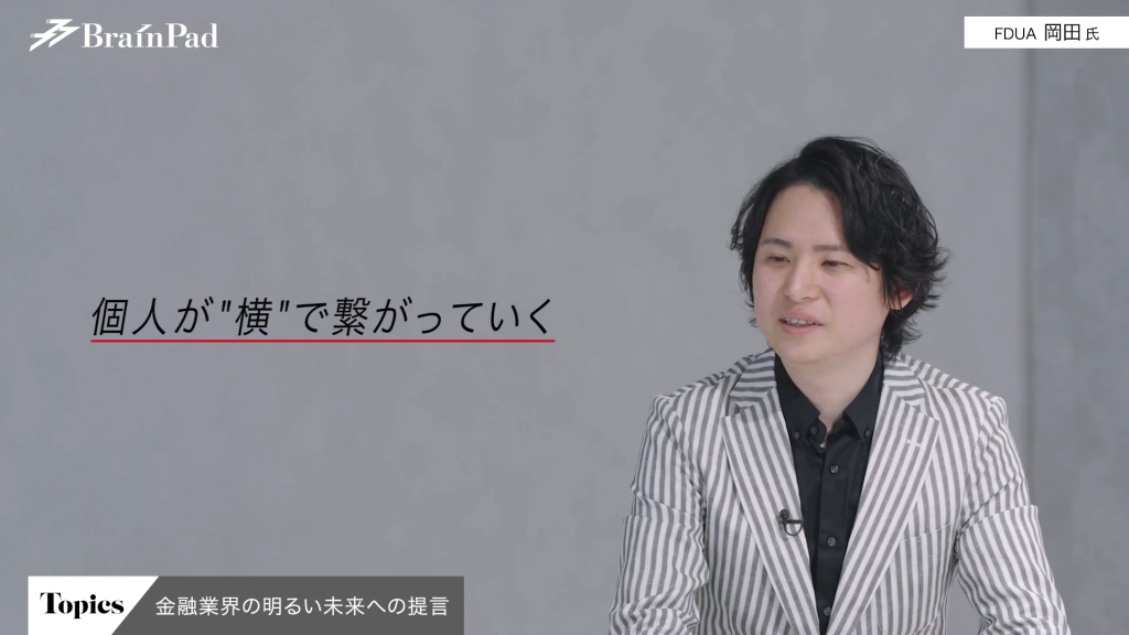 岡田氏 金融業界において、横の連携は金融業界と官公庁だけで完結するのではなく、それこそブレインパッドのような会社や他のスタートアップ企業とも連携していかなければならないと思っています。