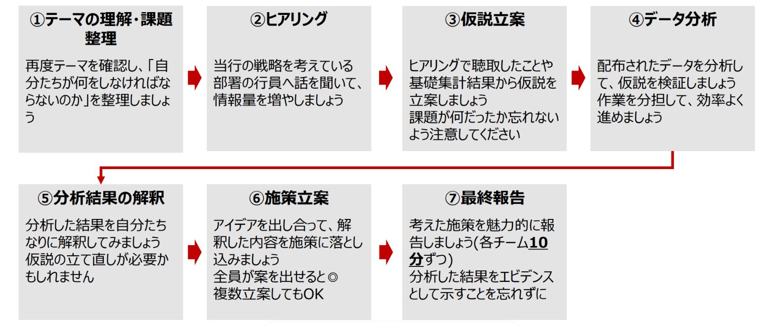 なお、参加時点での学生のスキルレベルに差があっても本質的な課題解決の議論に全員が集中できるよう、分析用データの量はExcelでも分析可能な範囲に調整しました。