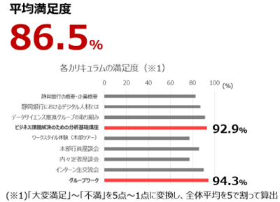 インターン終了後に参加学生から回答いただいたアンケートでは、イベント全体を通じて高い満足度を獲得することが出来ました。とりわけ、初日に実施した分析基礎講座と、2日目以降に実施したグループワークが高い評価を得ています。