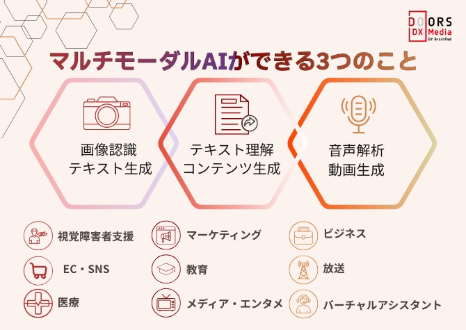 ここでは、マルチモーダルAIの代表的な3つの機能を、事例とともに紹介します。