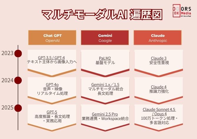 2025年現在、マルチモーダルAIを牽引する代表的なモデルが次々と登場しています。各モデルはそれぞれ得意分野や強みが異なり、活用できるシーンも多岐にわたります。