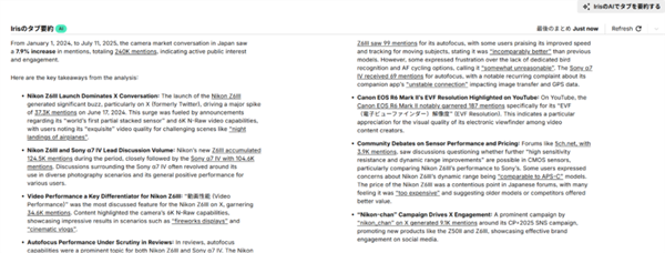 株式会社ブレインパッド(本社:東京都港区、代表取締役社長 CEO 関口 朋宏、以下:ブレインパッド)は、当社が提供するソーシャルアナリティクスプラットフォーム 「Brandwatch Consumer Research(ブランドウォッチ・コンシューマー・リサーチ)」に、 Google Gemini を活用した、ダッシュボード内のデータをAIが自動で要約する新機能「Irisタブ要約 (ベータ版)」を実装したことを発表します。