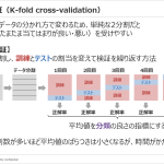 | PART2 | 【講義:120分】 ・機械学習による分類モデル作成の流れ -機械学習の目的 -分類に影響する問題:過学習 -分類の良さ(汎化性能)を確認する方法:ホールドアウト検証 -K-分割交差検証 -チューニング -LightGBMのハイパーパラメータ -グリッドサーチ:ハイパーパラメータの最適な組合せの見つけ方 -機械学習におけるモデル作成の流れ -対象の割合が偏るデータの分類 |