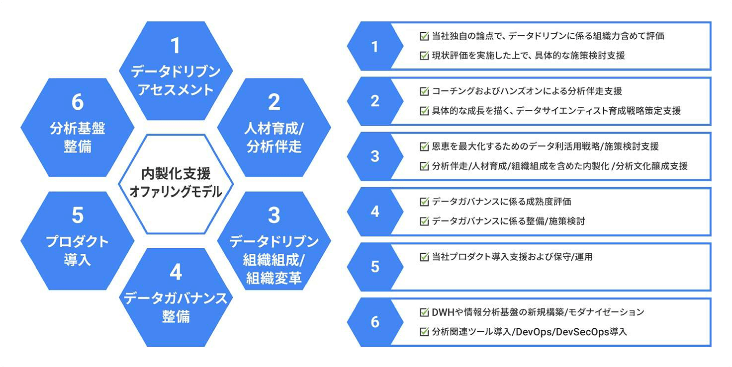 創業来培ったデータ活用ノウハウを惜しみなくお伝えし、データ活用組織の形成とデータ活用文化の醸成に貢献します。
