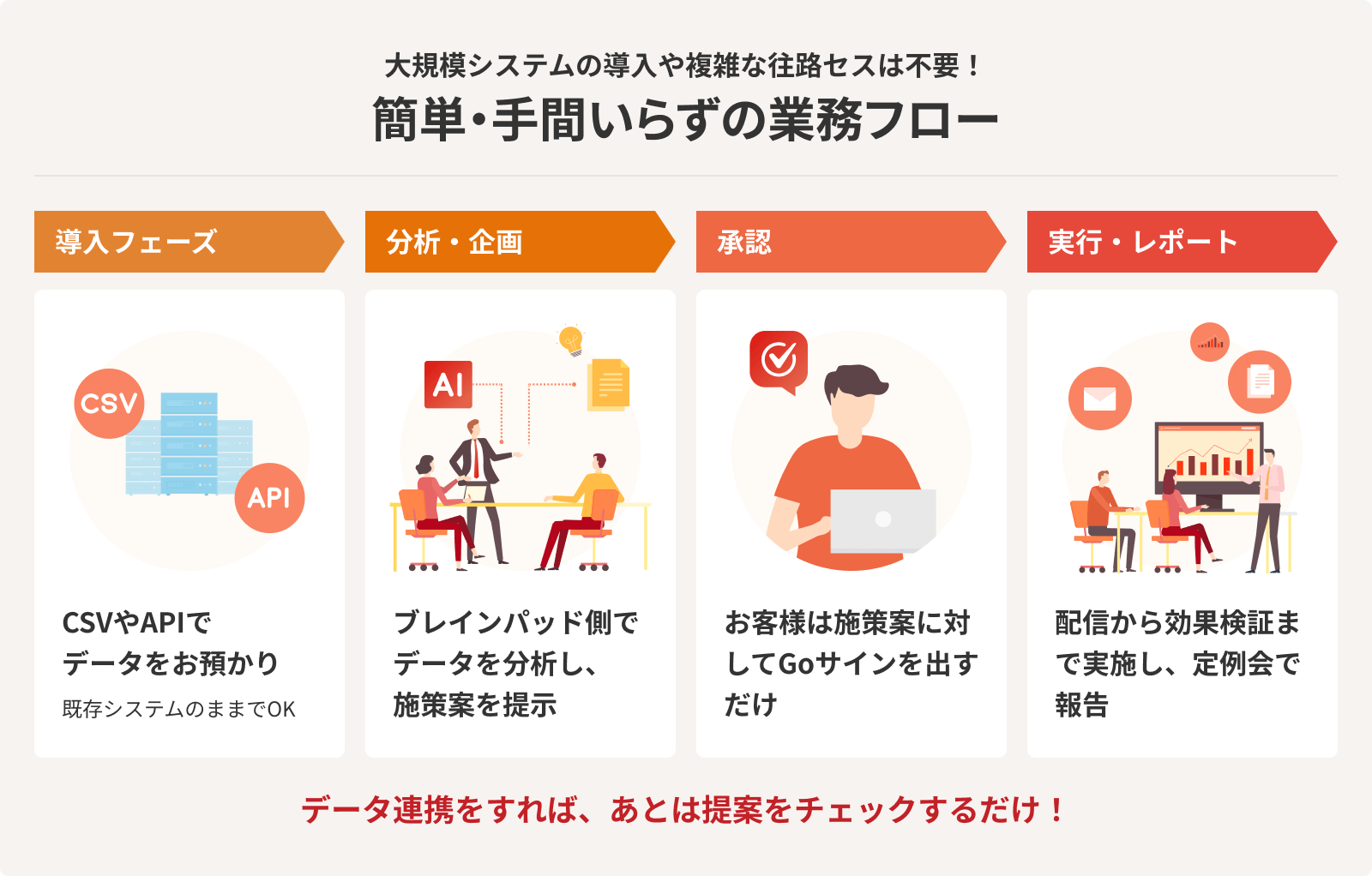 実装から運用まで“まるっと”対応。リソース不足でも高度なパーソナライズ施策を実現します。